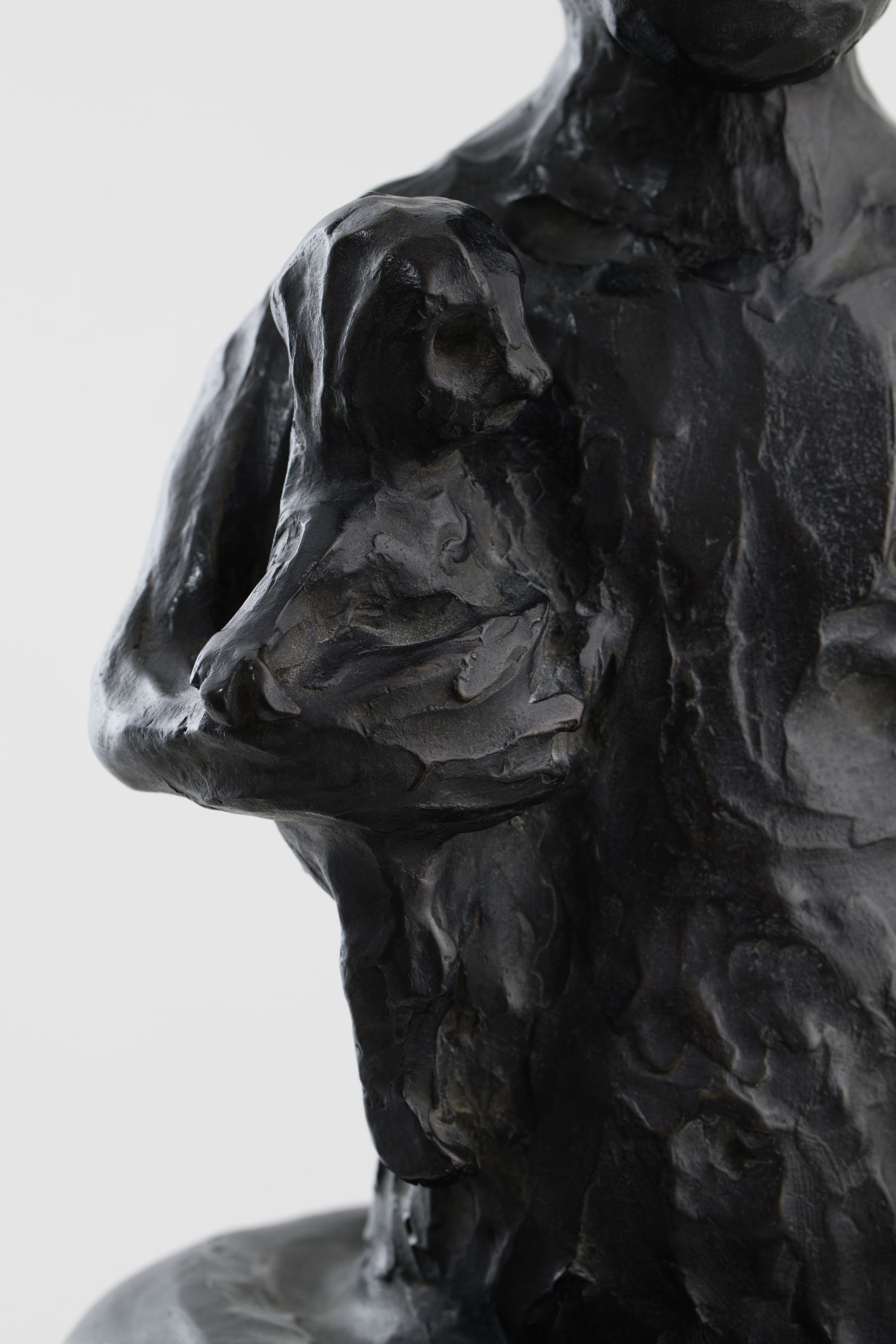 Laurent Le Deunff’s sculptures often mislead the eye due to the disparity between the materials used and the objects represented. He has a pronounced taste for traditional techniques from the world of arts and crafts as well as decorative artifices. The modesty of papier-mâché and fingernail clippings rubs shoulders with the nobility of bronze and deer antlers, and the rarity of fossilized dinosaur droppings sits side-by-side with the ordinariness of fake wood made from cement. Le Deunff’s meticulousness and acute sense of observation have also been deployed in his series of drawings—copulating animals, the footprints of imaginary monsters or artist’s cats—through which he explores animality, in a narrative that leaves plenty of space for the imagination. His bestiary brings together a wide variety of creatures—dolphins, slugs, seahorses or bears—without any hint of hierarchy of species. Humans are not excluded from the narrative, which reactivates a kind of archetypal primitivism: a prehistoric phallus and various totems and talismans transport civilization back to its most splendid origins.