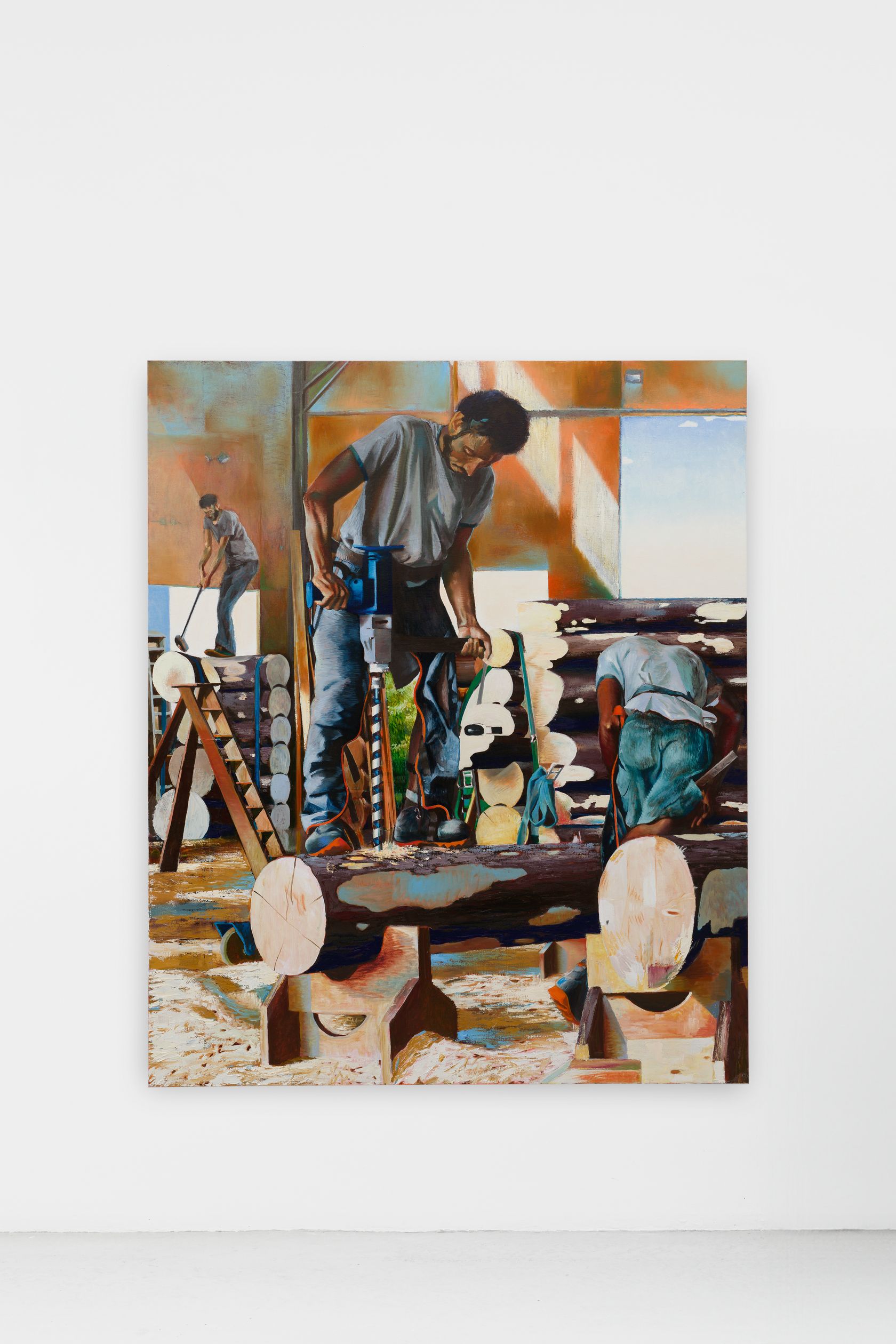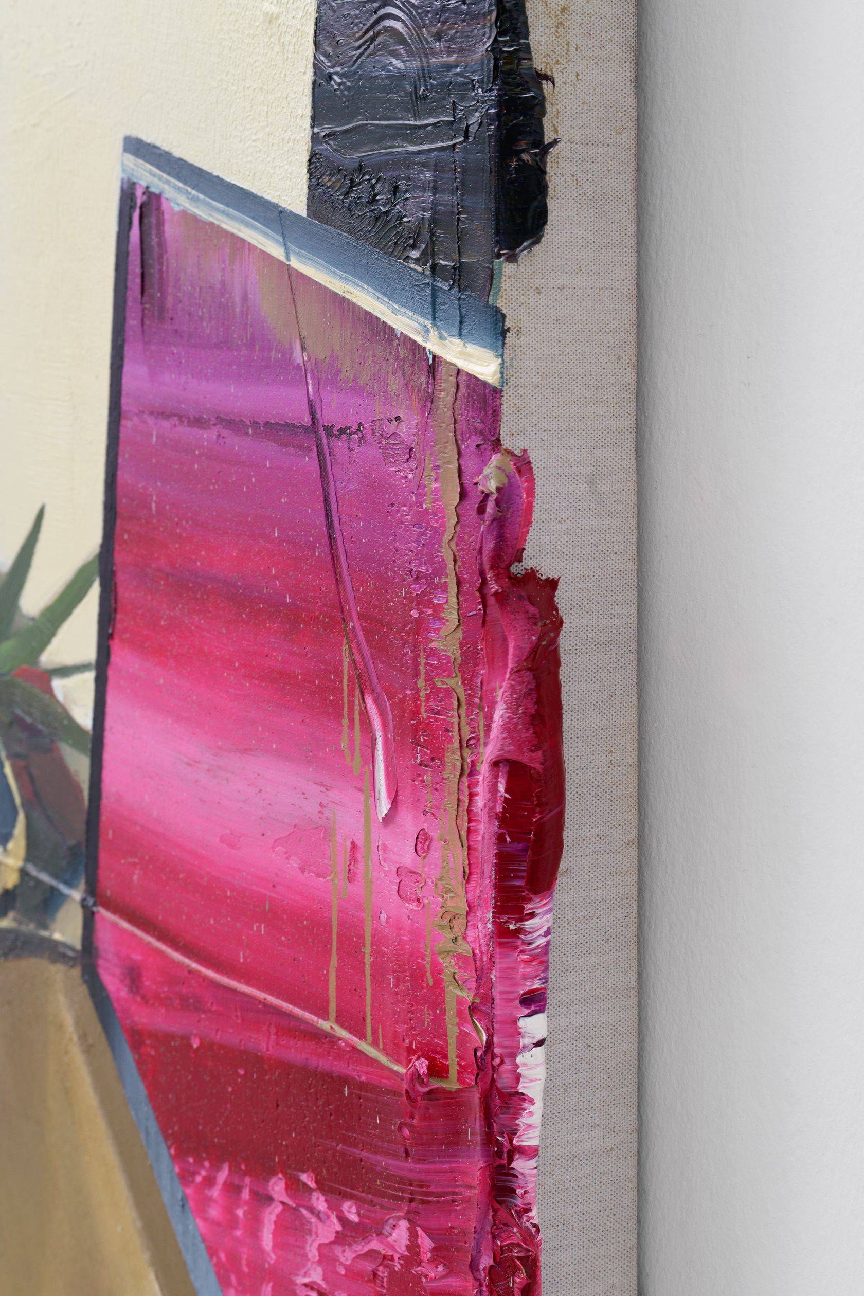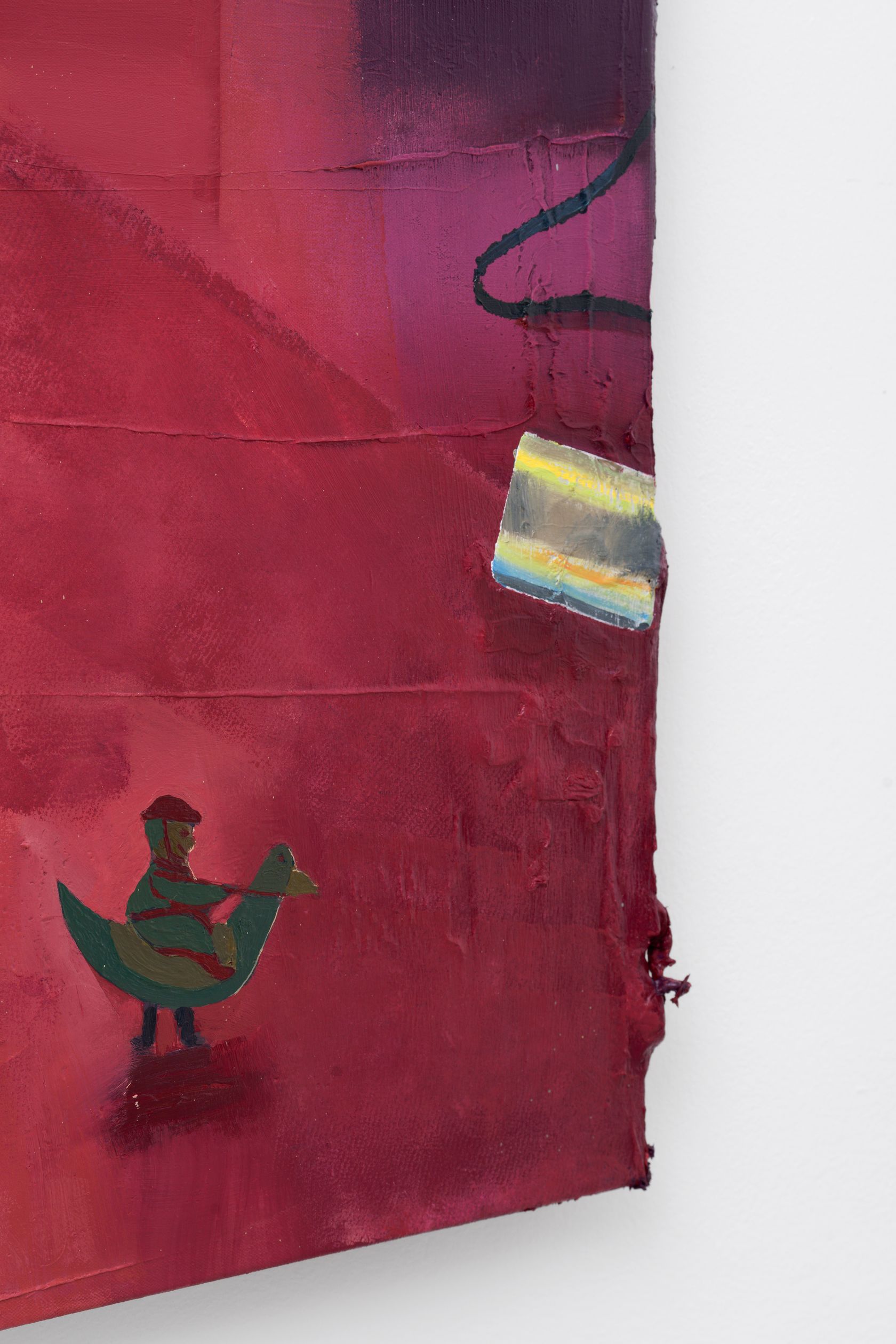 Born in Versailles in 1980, Laurent Proux lives and works in Paris. In his painting and drawing, Laurent Proux produces powerful and original imagery that seeks through his formal choices to resolve the questions raised by his subjects. Described by some as a realist due to the subjects he depicts—industrial machinery, workstations, sexualized bodies, etc.—his style finds its emancipation through his never-ending exploration of pictorial solutions, the integration of aberrations, bringing planes into collision, the use of artificial colors, all freeing his oeuvre from the opposition between figuration and abstraction. He approaches the human form through fragments, exaggeration and the use of silhouettes to create a kind of body-cum-machine, politicized and under assault, often disturbing and occasionally sentimental. His canvases take the form of a stage, in an altered perspective and the artist addresses the spectator with a visual and intellectual enigma running through the image.