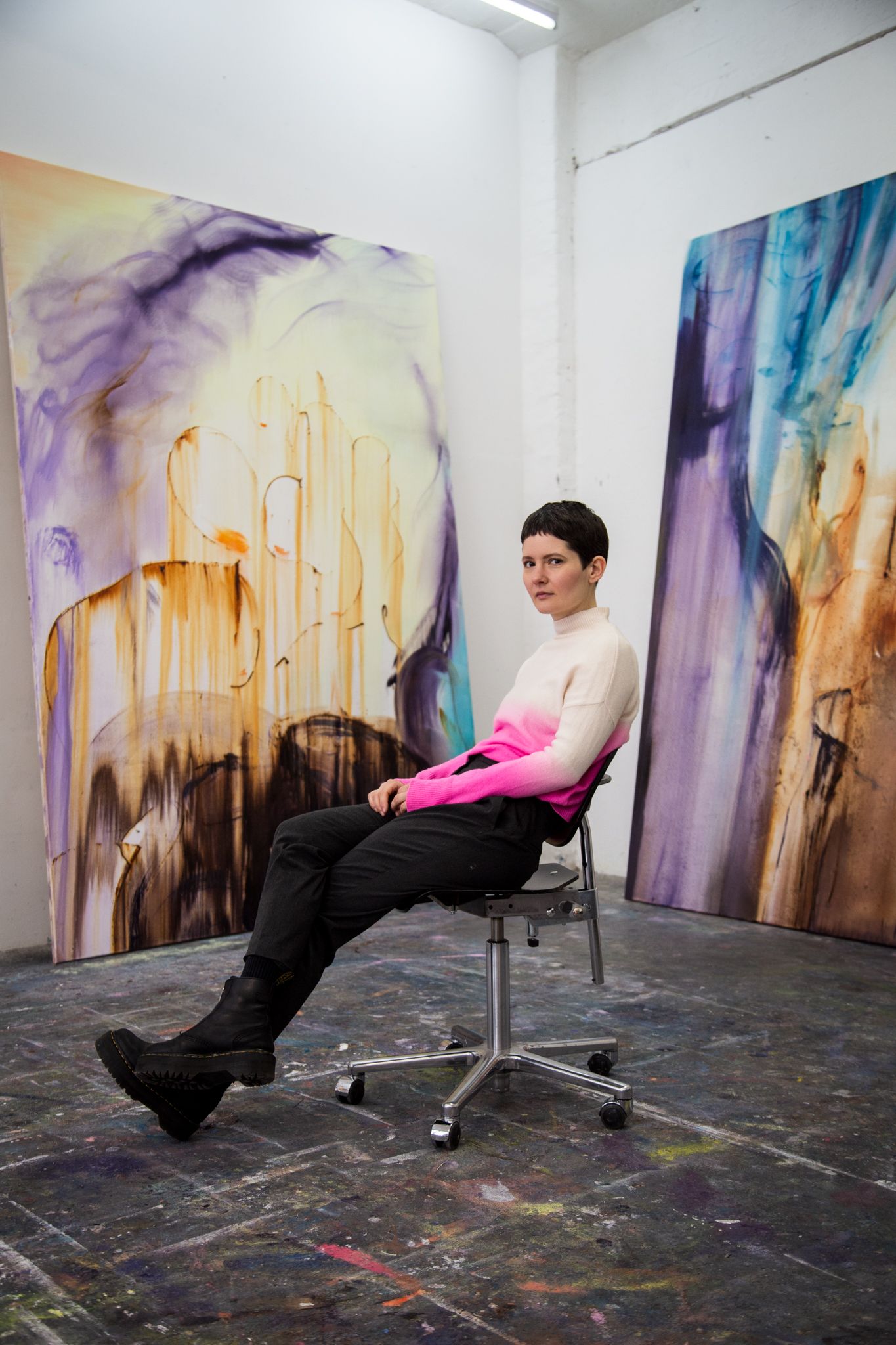 Aneta Kajzer was born in 1989 in Katowice in Poland and lives and works in Berlin. She graduated from the Kunsthochschule Mainz and was awarded a residency at the Künstlerhaus Bethanien in Berlin. In 2018, she participated in the Goldrausch Künstlerinnenprojekt, a development program for female visual artists. Her work is regularly exhibited, particularly in shows dedicated to the contemporary rejuvenation of German art such as Now ! Painting in Germany Today in Deutschland, shown at the Deichtorhallen Hamburg, Kunstmuseum Bonn, Kunstsammlung Chemnitz and Museum Wiesbaden in 2019-2020. She has also enjoyed numerous solo exhibitions, most notably at the Conrads Gallery in Düsseldorf, the Künstlerhaus Bethanien and the Institut für Moderne Kunst in Nuremburg.
