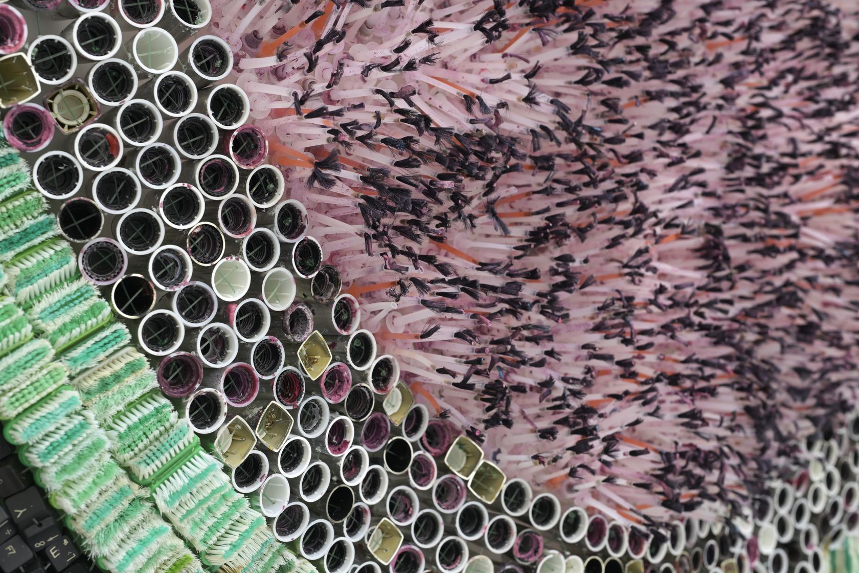 - Keyboard keys, plastic toothbrush head and nails polish parts