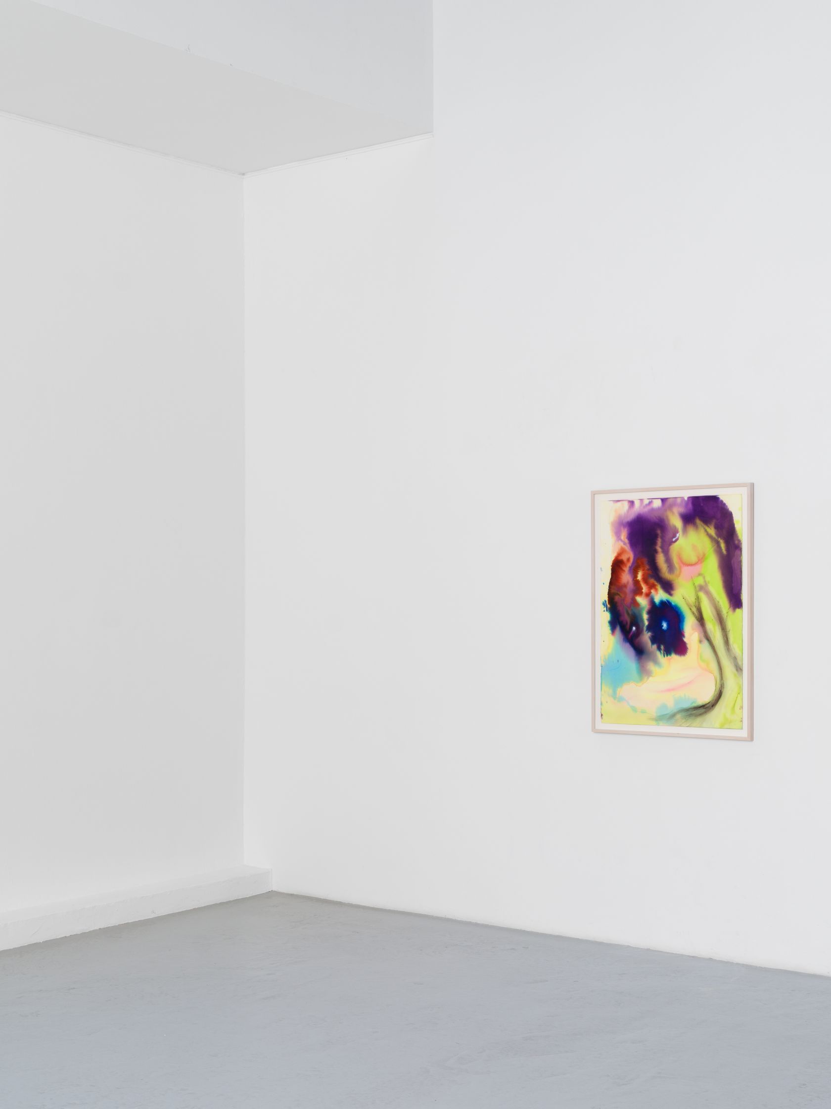 La peinture d’Aneta Kajzer emprunte autant à la liberté des lavis et des champs colorés d’Helen Frankenthaler qu’à la figuration de Maria Lassnig, Miriam Cahn ou Nicole Eisenman qui sont pour elle de véritables héroïnes. Ce n’est pas l’abstraction qui succède à la figuration, ni l’inverse : c’est leur respiration commune qui fait naître le tableau. Un coup de brosse long devient mèche ; une coulure brune se fond en rideau de pluie ou de cheveux ; deux points noirs ouvrent des yeux ; une bouche est un cadmium renversé ; un simple appui du métal du tube creuse la ligne qui manquait dans un dessin sans crayon.